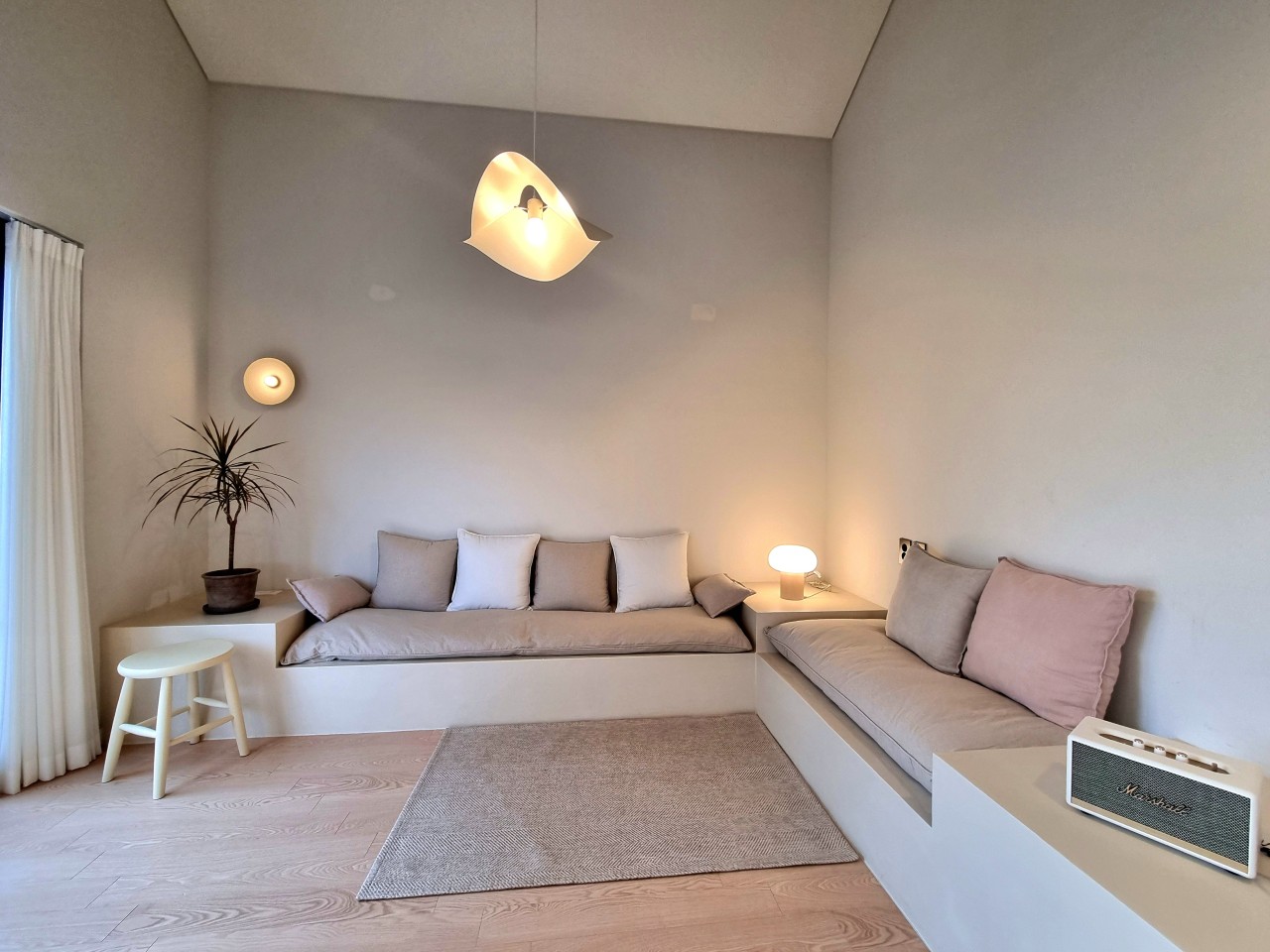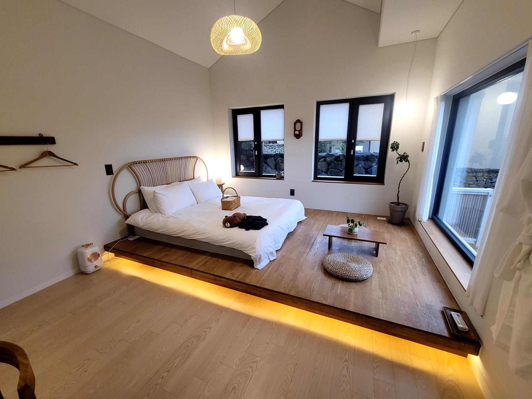 복층으로 층고가 아주 높은 북유럽식 22평형(1층) + 8평(복층) 프라이빗한 펜션입니다. 마스터 룸에서는 귤나무와 소담스런 정원뷰의 통창을 보며 커피 한잔의 힐링을, 뒷마당에서는 소나무 숲을 바라보며 야외자쿠지를 즐겨보세요.