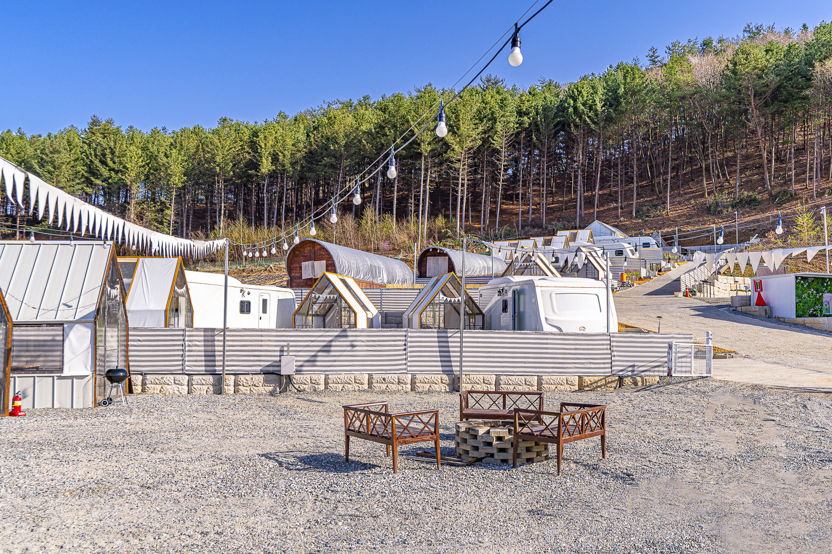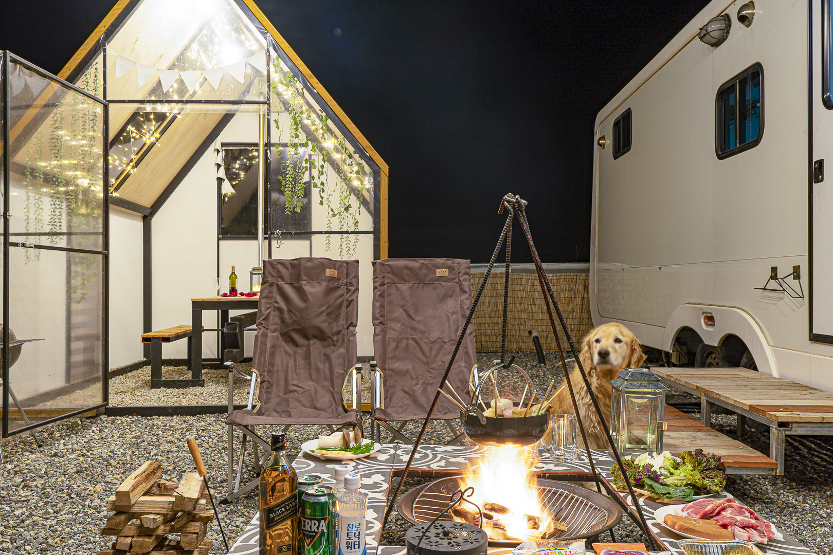 애견동반이 가능하며 전객실 카라반으로 구성되어있습니다 불멍으로 감성캠핑이