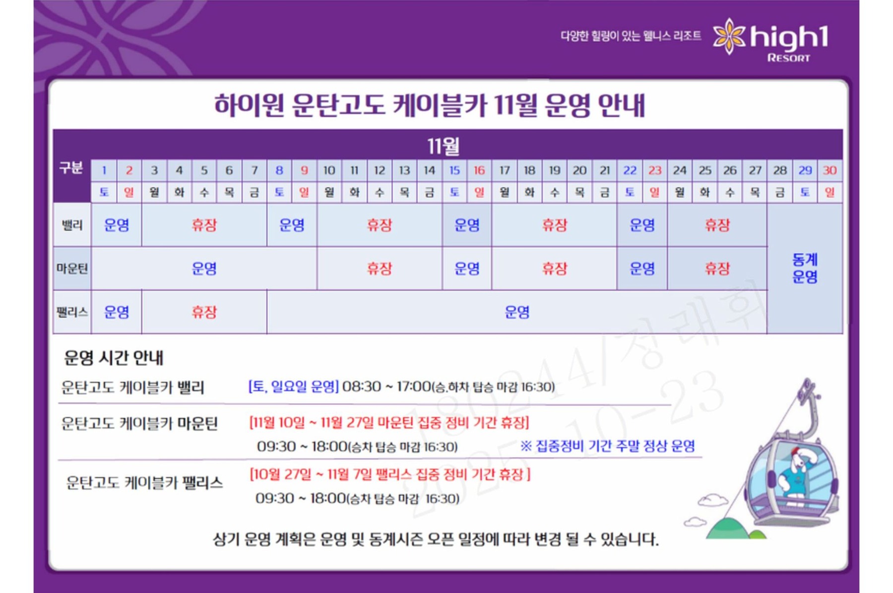 ※ 업장 영업 일정 및 곤돌라 운영 일정등 당사 사정에 의해 변경 될 수 도 있습니다.