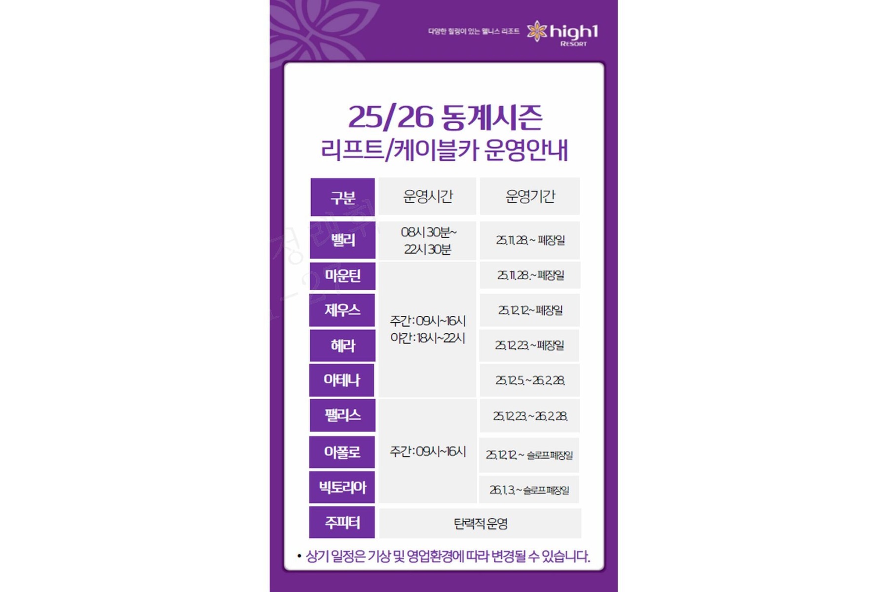 ■ 하이원 운탄고도 케이블카 및 시즌 영업장 운영안내