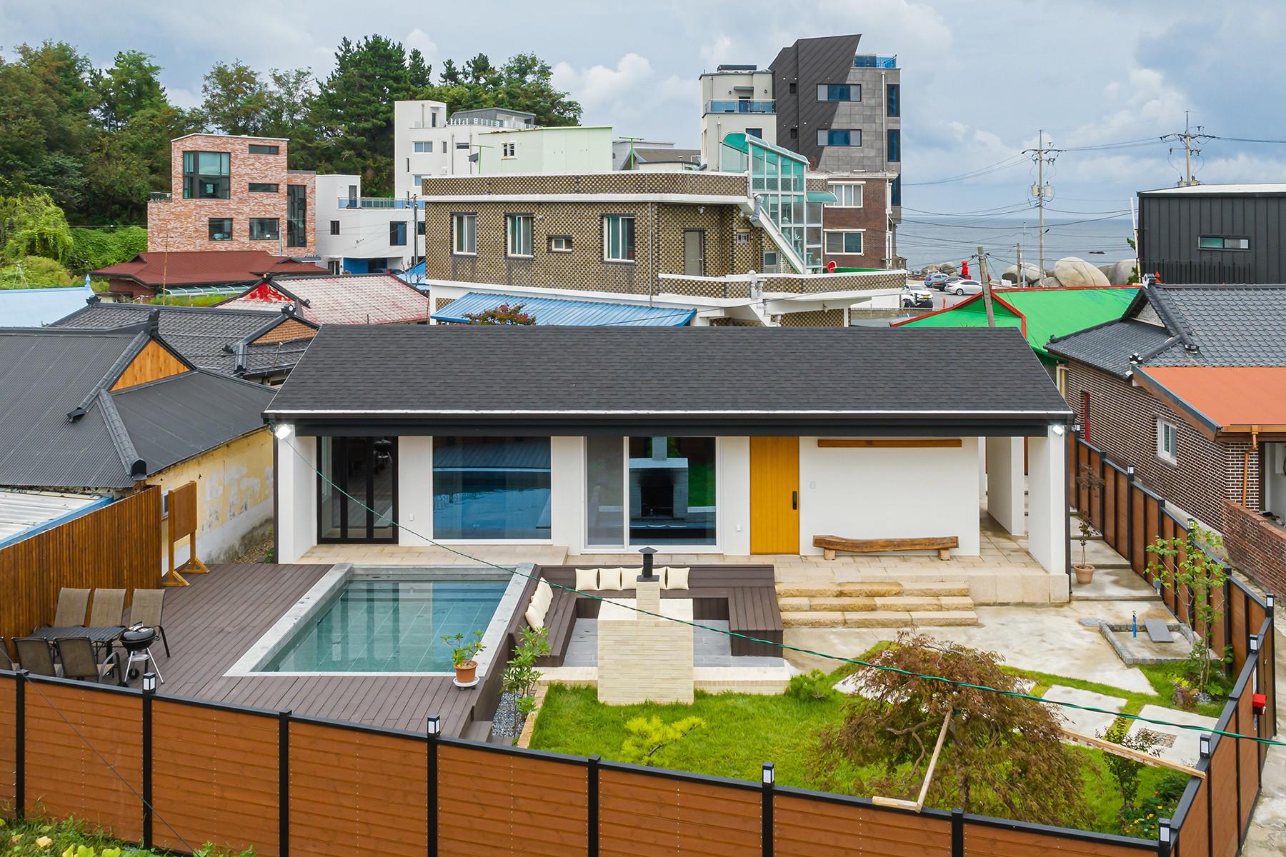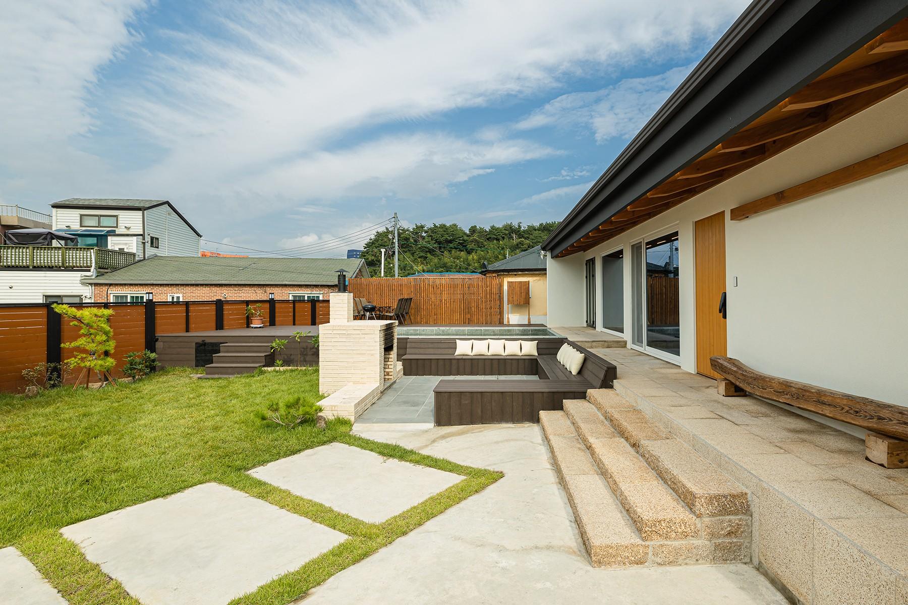 물과 불, 꽃과 나무가 조화로운 정원 '스테이 아온' 스테이 아온은 강릉시 사천면 어느 조용한 바닷가 마을에 자리 잡았다. 목수인 할아버지와 아버지가 아이들을 생각하며 만들었다. 바다가 가까운 거리에 있어 잔잔한 파도 소리가 들려오는 진정한 쉼의 공간이다. 근처에 해수욕장과 항구가 있어 서핑, 스쿠버다이빙, 낚시 등 즐길 거리가 다양하다. 마 당에서는 화로에 장작을 피우고 고구마를 구워 먹으며 옛 추억에 잠긴다. 폴딩 도어를 활짝 열고 시원함을 느끼며 반신욕을 즐기는 것도 좋다. 바다 내음 가득한 이곳에서 우리만의 소중한 추억을 만들어가길 바란다.