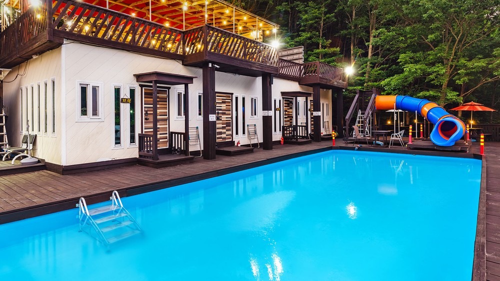 - 공용수영장 및 디럭스 전용수영장은 하절기에만 운영하며 별도의 이용료 없이 누구에게나 무상으로 운영됩니다. 미온수의 이용은 불가능합니다.