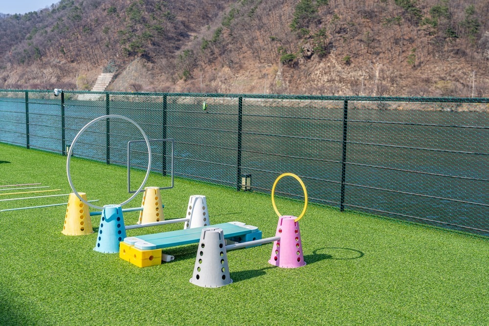 ㅁ 드넓은 인조 잔디 정원에는 다양한 포토존과 강아지 놀이시설이 준비되어 있습니다.