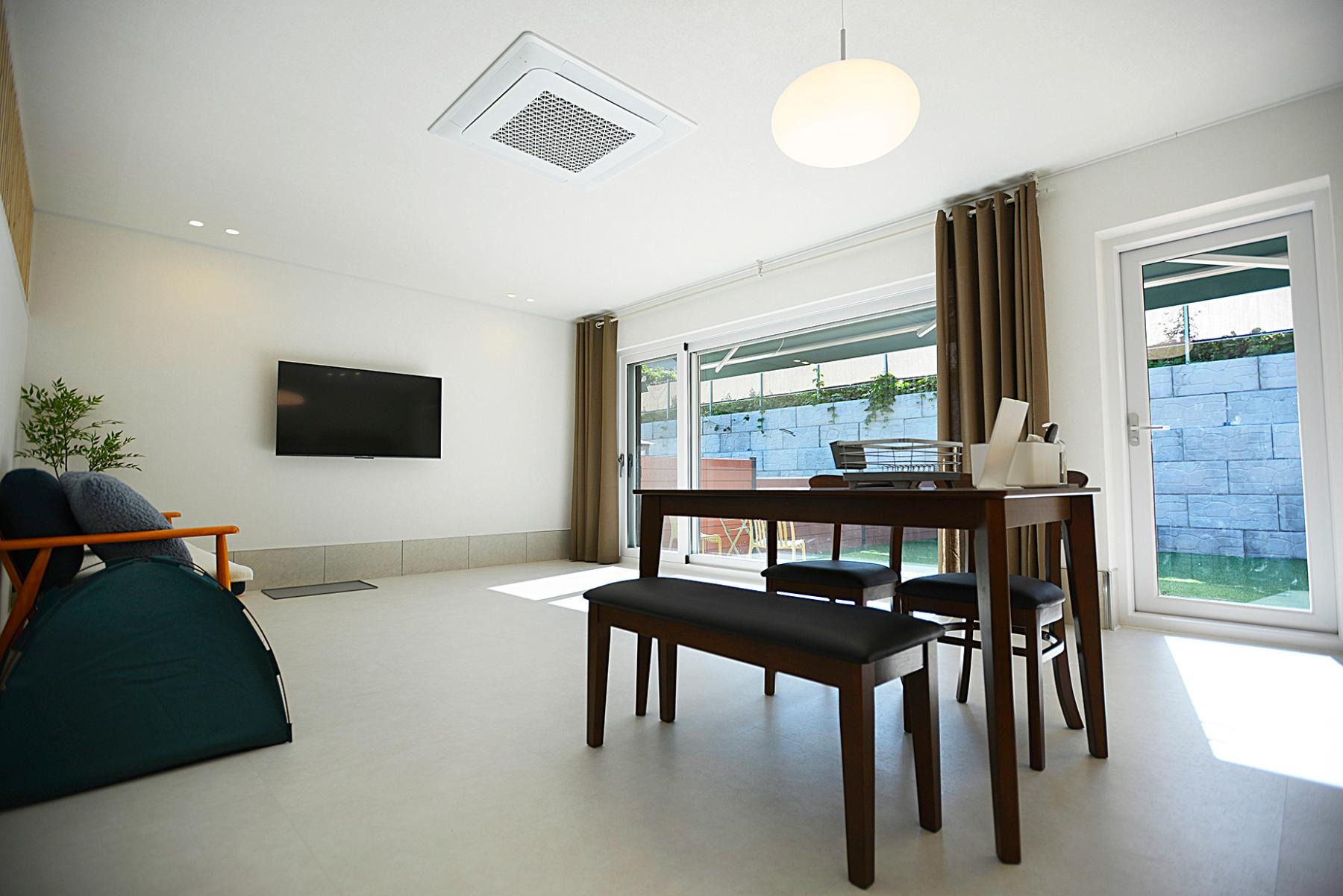 [🙇인원 정보] ▪ 인원 : 기준 2인 / 최대 4인 ▪ 추가 요금 : 1인 당 2만원 (1박 당) 👶 24개월 미만 영유아 무료 입실 [부대 시설] 🍖 바베큐 (개별) ▪ 이용 금액 : 20,000원 (2인 기준) - 1인 추가 시 : 5,000원 ▪ 제공 물품 : 그릴, 숯, 불판 📢 이용 요금은 현장 결제입니다! 🔥 불멍 (파이어피트 이용) ▪ 이용 금액 : 20,000원 ▪ 제공 물품 : 참나무 장작 (10kg) 📢 이후 10kg 추가 시 1.5만원 입니다. 📢 이용 요금은 현장 결제입니다! 📢 개인적으로 가져오신 장작은 절대 사용금지!! [🌿잔디 마당] ▪ 약 50평 잔디 운동장 [⏰입실/퇴실] ▪ 입실시간 : 15시 ▪ 퇴실시간 : 11시 ▪ 흡연구역은 주차장에 위치하고있습니다. 이외의 모든 구역은 금연구역입니다. ▪ 와이파이 비밀번호는 따로 설치되어있지않습니다. ▪ 조리도구는 인덕션 씽크대 안에 위치하고있습니다 ▪ 바베큐장에서 이용가능한 조리도구도 싱크대 안에 있습니다 ▪ 파이어피트(불멍) 외 인조잔디에서 불 사용은 금하고있습니다 ▪ 개인적으로 가져오시는 폭죽.장작 사용이 불가능합니다. ▪ 보호자의 부주의로인한 사고는 책임지지않습니다 ▪ 안내사항을 준수하지않아 운영에 차질이생긴경우 배상을 청구할수있습니다