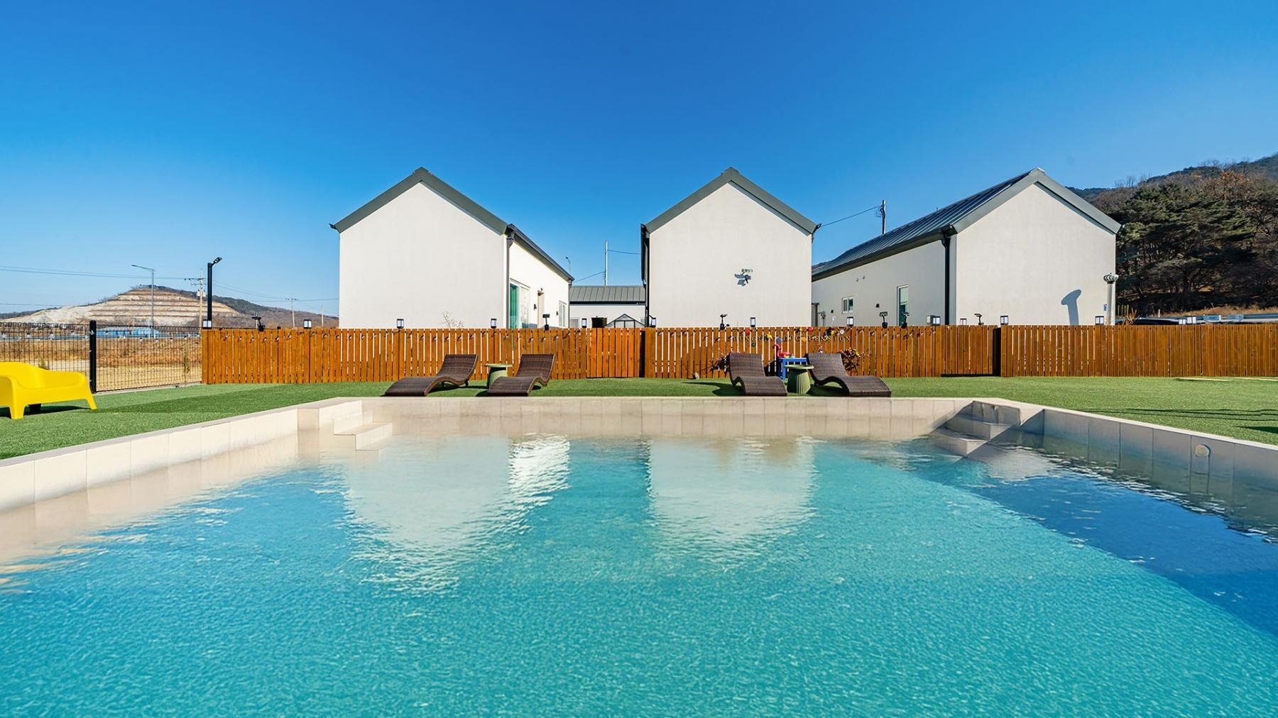 🐶소형견 중형견 대형견 가능 - 1~4동은 kg수 제한 없으나 4대 맹견 불가, 소,중,대형견 가능 - 5~7동은 15kg까지 소,중형견만 가능 🔢기준 : 반려견 1마리 무료 / 최대 2마리 이용 가능 (2마리 동반부터 추가요금 발생) 💵추가요금 : 소형견 중형견 10,000원, 대형견 20,000원 (kg수 제한 없으나 4대 맹견 불가) ㄴ필요 시, 옵션 사항에서 결제 [시설 및 용품 정보] - 개별 애견 운동장 / 초대형 300평 공용 운동장 - 개별 야외 수영장 객실 보유 / 초대형 공용 야외 수영장 (5월~9월 운영) - 반려견 용품 : 간식,식기 ,계단, 매너벨트, 탈취제, 배변패 등 기본적인 반려견 용품이 준비되어 있어 여행 중에도 부담 없이 머무르실 수 있습니다.