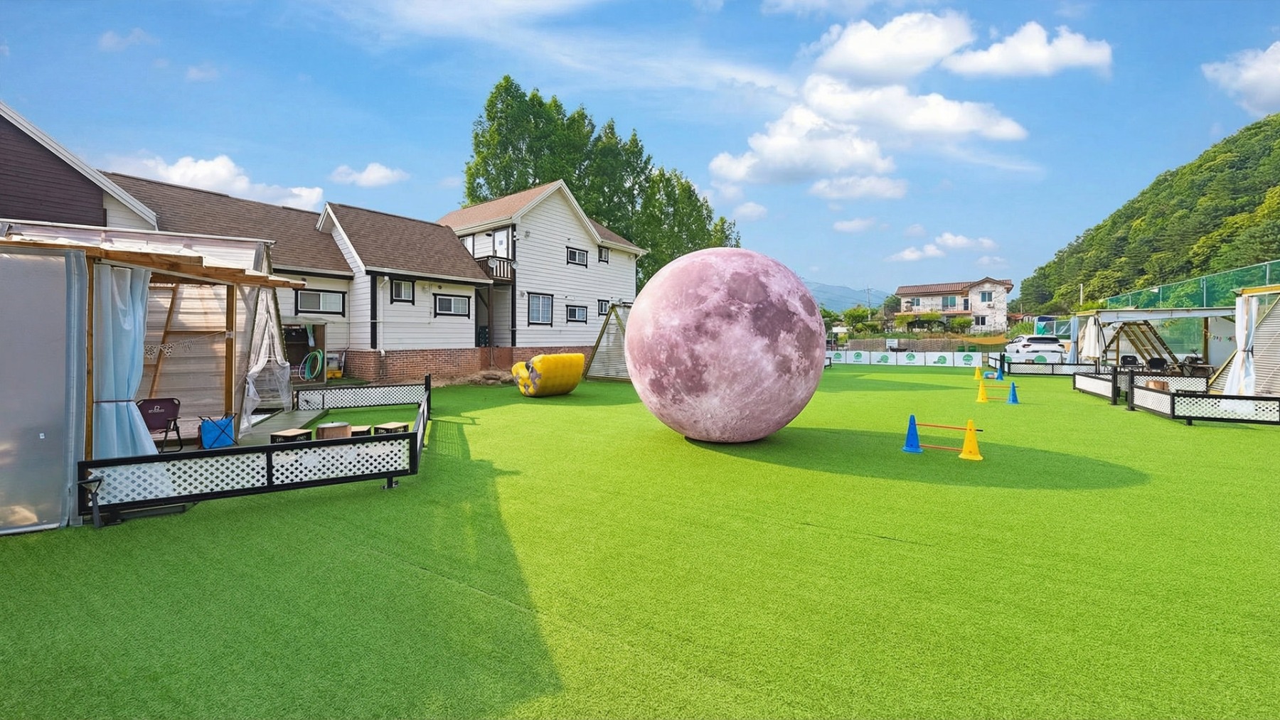 [애견동반] - 이용 객실: 전객실 - 이용 요금: 1마리는 무료, 2마리부터 1마리당 20,000원 (1박기준/현장결제) ※ 리트리버 객실은 1마리당 3만원 - 제한 무게: 15kg 이하 / 리트리버 객실은 제한 없음 - 제한 마릿수: 푸들,말티즈,비숑,포메객실 3마리까지, 캠핑 사이트 4마리까지, 리트리버 객실 3마리까지 - 반려동물 허용 종류: 반려견만 가능 - 제한 사항: 대형견 입실 불가(리트리버 객실 소중대형견 가능) ※ 애견 펜스 높이 150cm ※ 대형 개별 애견 어질리티 운동장 ※ 물놀이용 스프링쿨러 펜스 설치 완료 [개별운동장] ※ 객실별 바베큐 앞 개별 애견운동장(포메2 객실제외)