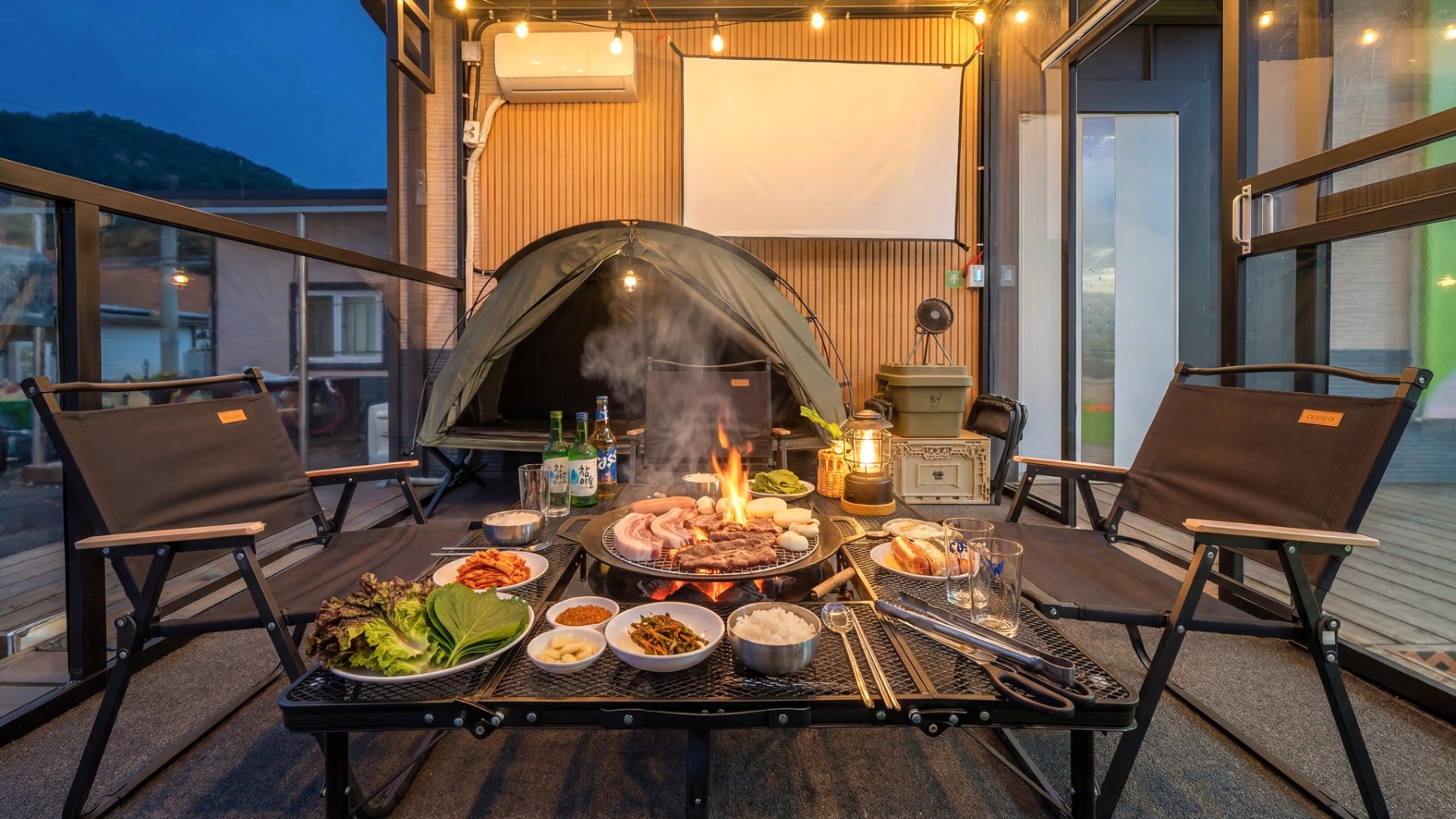 ※ 리트리버 객실은 개별 바베큐장 내 빔프로젝트+마샬 블루투스 스피커 이용 가능