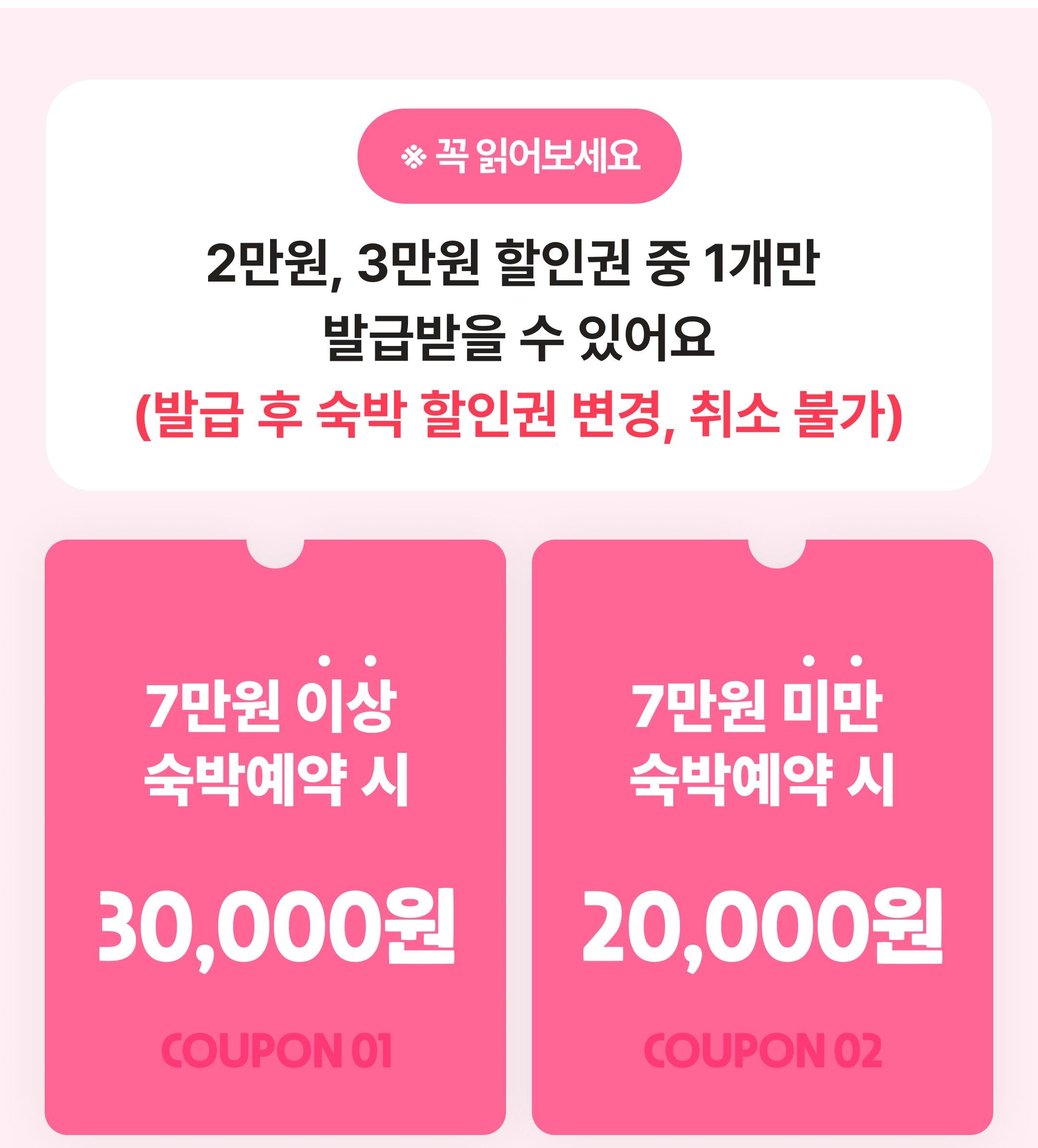 - 발급 후 사용하지 않은 숙박 할인권은 유효기간 이후 소멸됩니다.