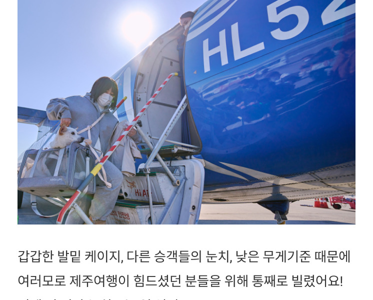 *안전을 위해 이동 중 반려동물에게 하네스(또는 목줄)을 해주시고, 기내 탑승 시 전용 안전벨트(제공예정) 착용 필수