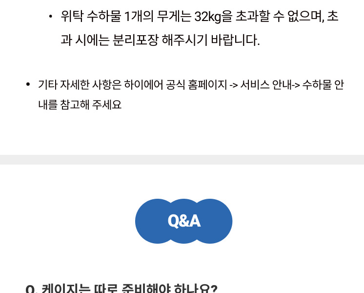 *케이지의 경우 가로+세로+높이의 합이 100cm이하인 경우 가능합니다.