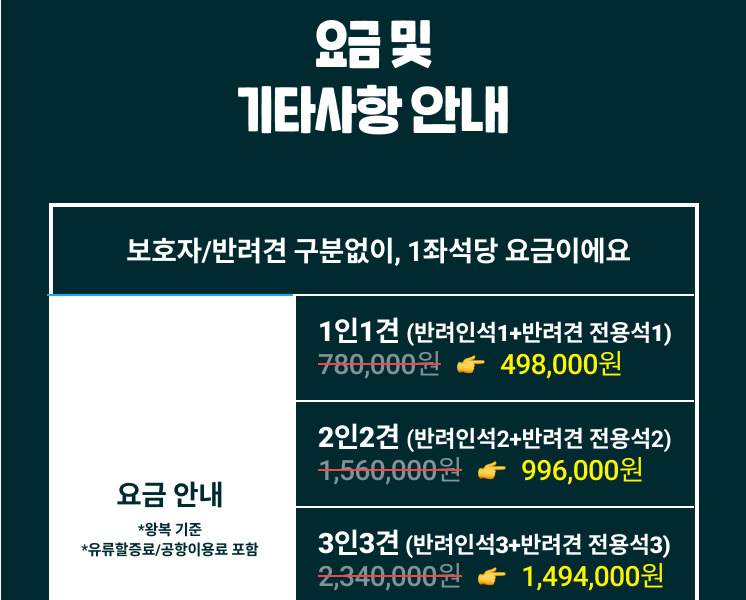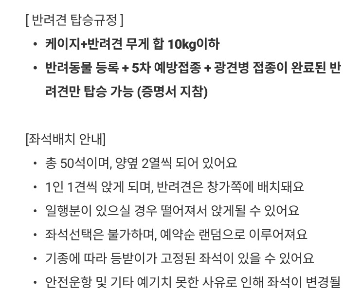 *성인 탑승객 1인당 반려견 최대 1마리 동반 가능(ex>1인-1견 가능, 2인-1견가능 / 1인-2견불가)