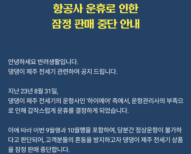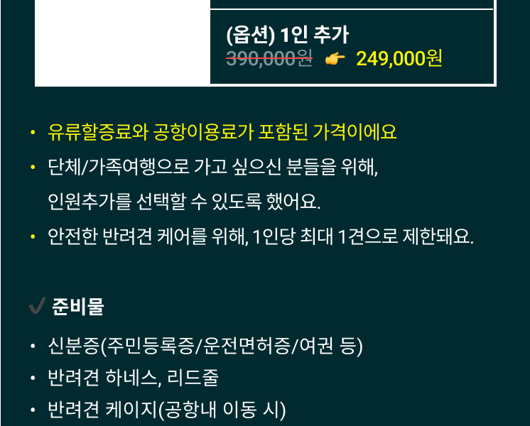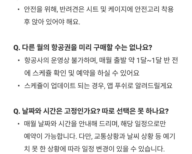 *공항 이용 및 비행기 탑승 시 현장에서 발생하는 모든 문제에 대해서는 반려생활에게 책임이 없음을 알립니다.
