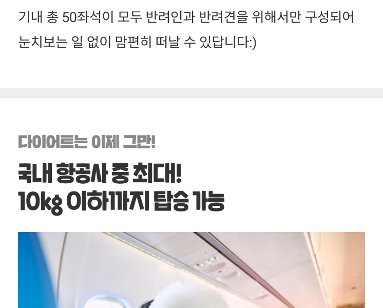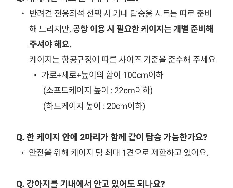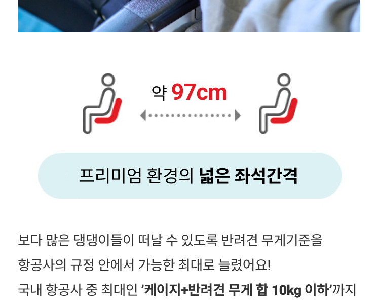 *전용좌석의 경우 기내 탑승 시 케이지가 제공되나, 공항이용 시 사용할 케이지는 별도로 준비해 주셔야 합니다..
