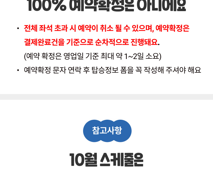*예약확정은 결제완료건을 기준으로 순차적으로 진행되며, 전체 좌석 초과 시 예약이 취소 될 수 있습니다.