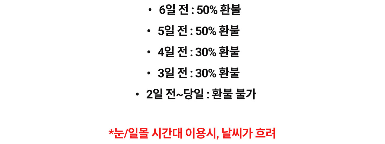 -눈/일몰 시간대 이용시, 날씨가 흐려 일몰을 잘 못보는 경우 환불 되지 않습니다.