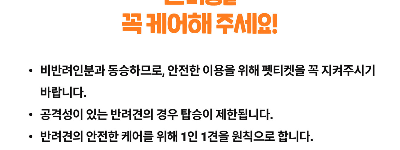 -비반려인분과 동승하므로, 안전한 이용을 위해 펫티켓을 꼭 지켜주시기 바랍니다.