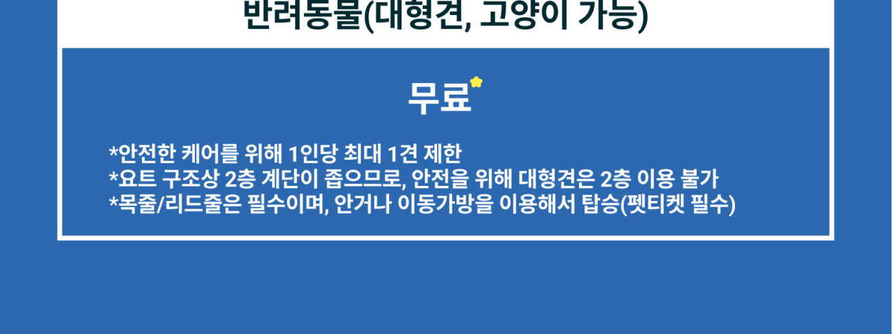 (요트 구조상 2층 계단이 좁으므로, 안전을 위해 대형견은 2층 이용 불가)