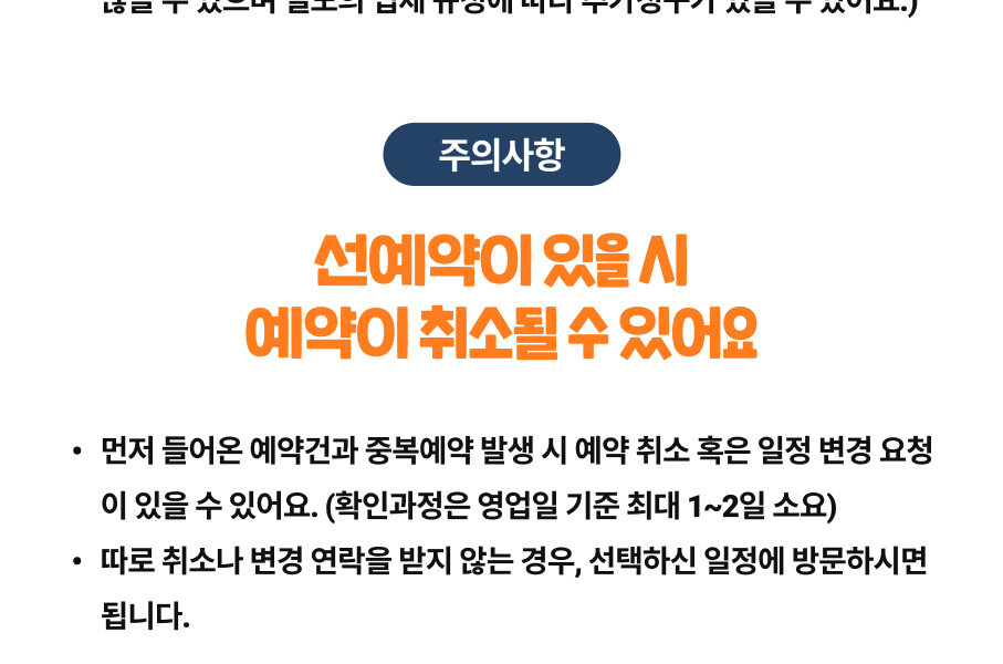 - 예약이 확정된 일정은 날짜 변경이 불가하니 양해 부탁드립니다.