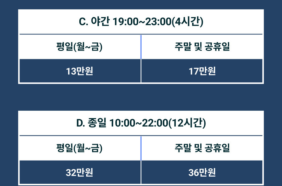 숙박 불가(이용시간 10:00~21:00)