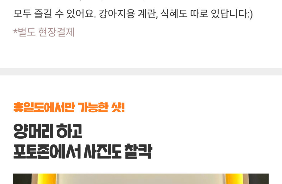 -프라이빗룸은 시간당 사전 예약제이며, 예약시간 확인을 위해 휴일도 측에서 유선연락을 드릴 예정입니다. (1일 50분동안 이용 가능)