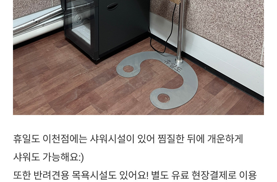 -탈의실은 반려견이 들어갈 수 없는 공간입니다. 보호자분께서 탈의실을 이용하실 때 일행에게 반려견을 맡기고 이용해 주시기 바랍니다.