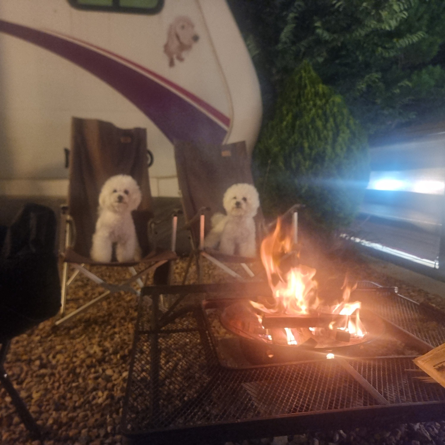 애견 전용이 아닌 애견동반 캠핑장으로 카라반 앞 마당이 파쇄석으로 되어있습니다.