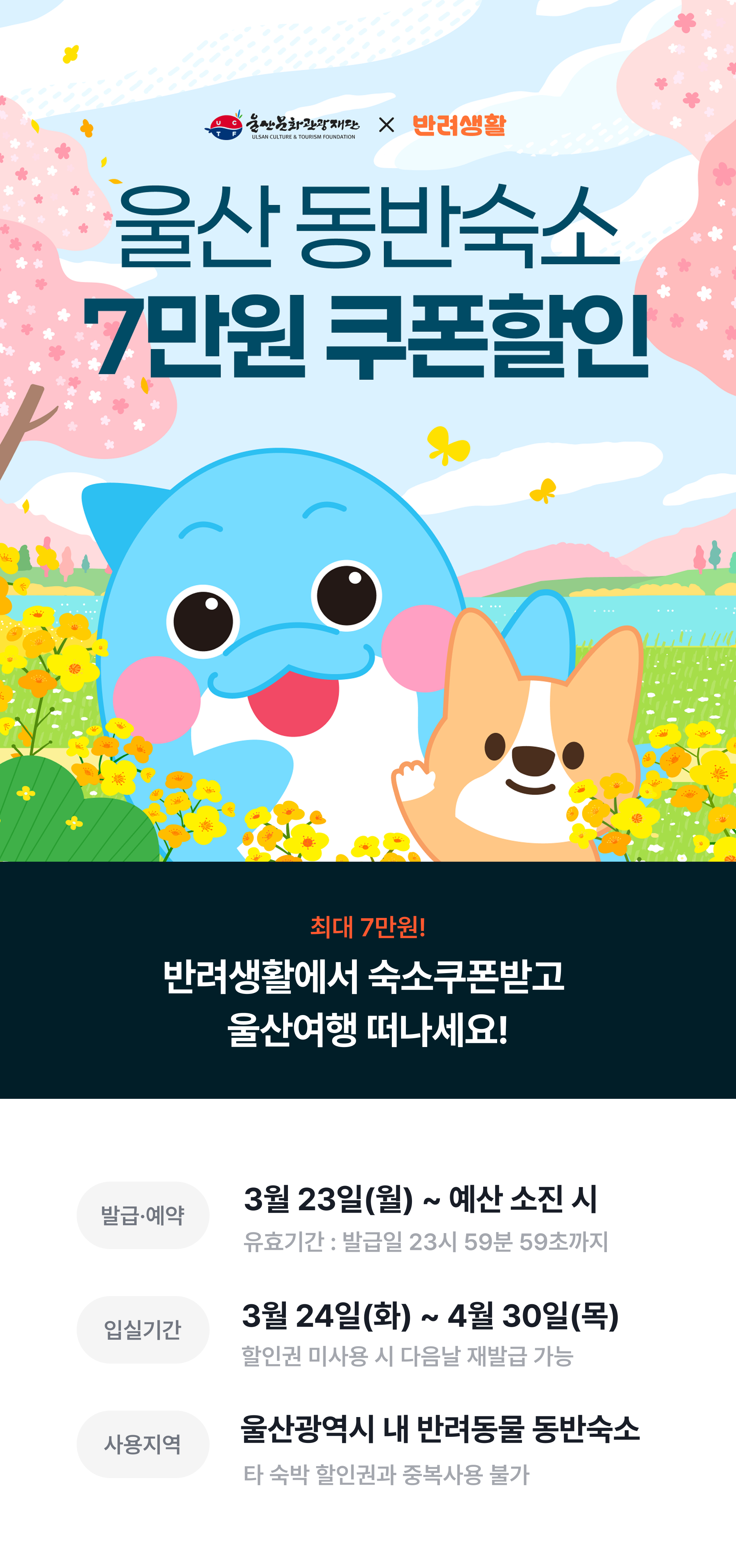 - 울산광역시 내 반려동물 동반숙소에 한해 본 숙박 할인권 사용이 가능합니다.