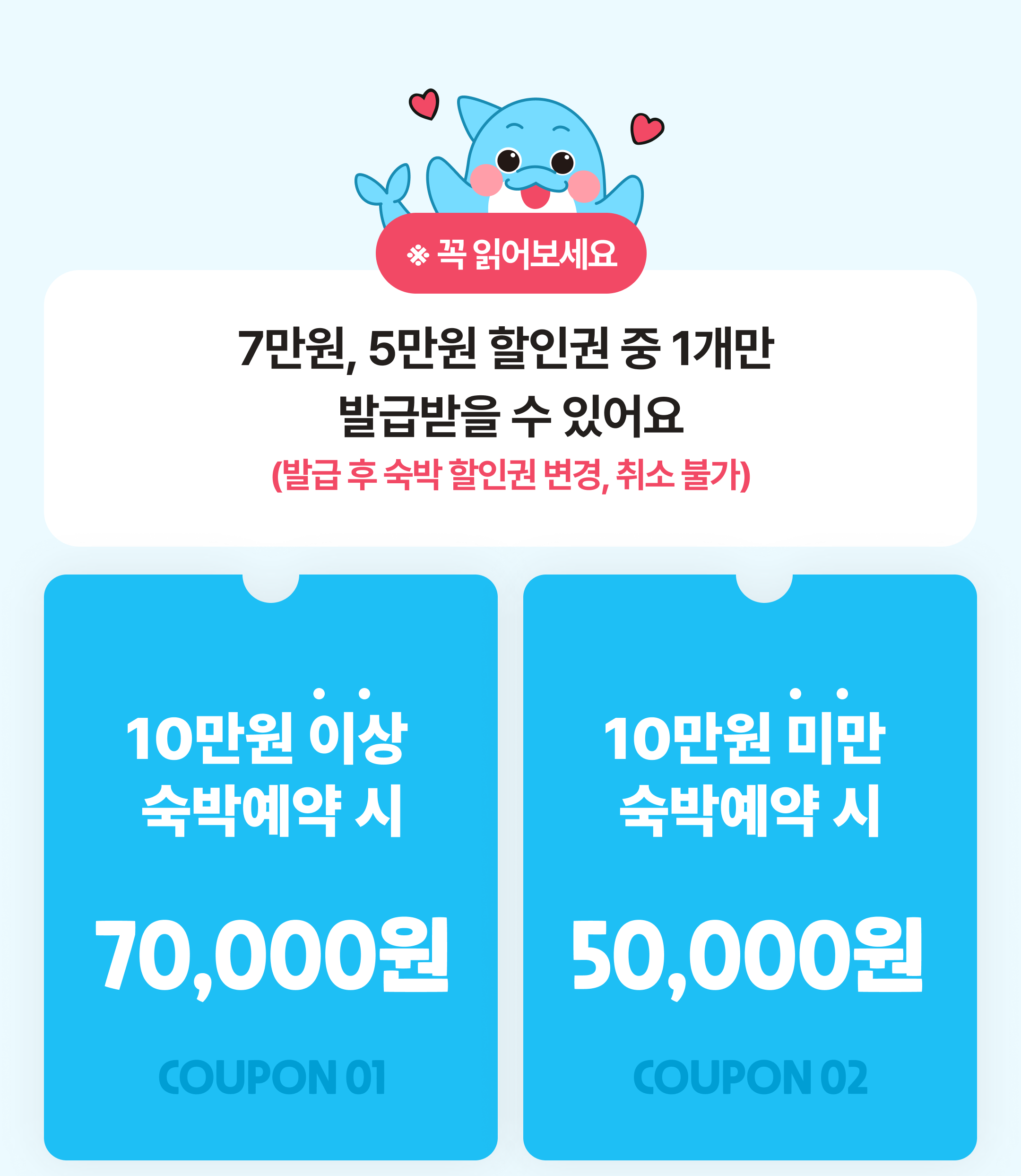 - 발급 후 사용하지 않은 숙박 할인권은 유효기간 이후 소멸됩니다.