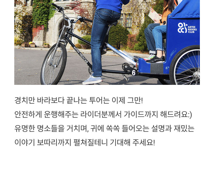 1. 투어 15분 전, 배정된 라이더가 전화를 드릴 예정입니다. 노약자나 거동 불편하신 분은 라이더에게 말씀 주시면 투어코스 조정 가능합니다.
