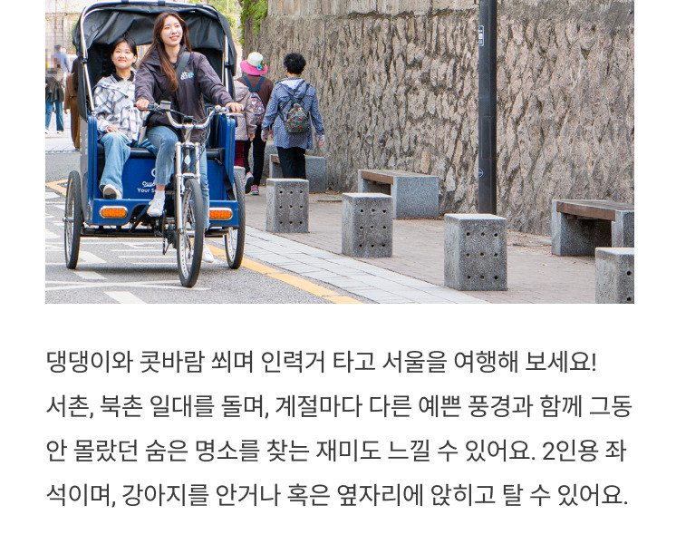 -3인승 인력거가 있으나, 예약 상황에 따라 이용하기 어려울 수 있습니다.