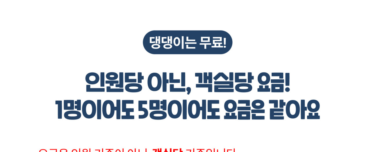 - 반려동물 추가요금은 없으며, 해당 요금은 사람 수가 기준이 아닌, 4~5인실 객실 기준 요금입니다.