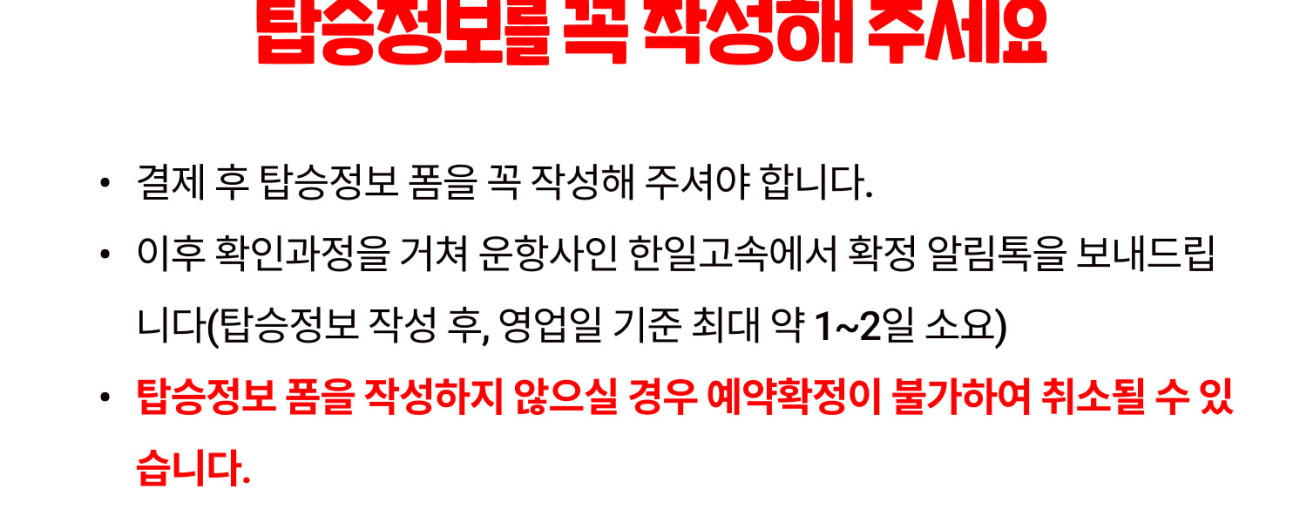 -결제 후 탑승정보 폼을 꼭 작성해 주셔야 합니다. (결제 시 알림톡으로 작성링크를 보내드립니다.)