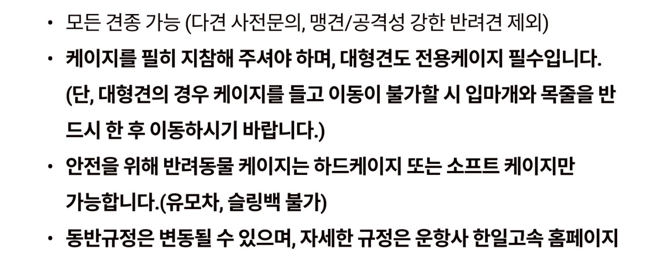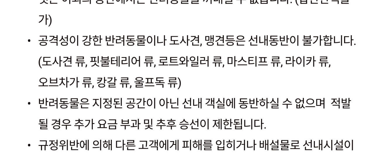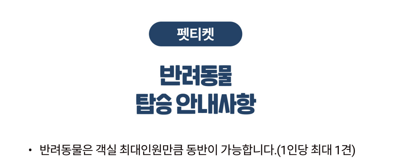 - 반려동물은 전용케이지에 넣어야 승선이 가능합니다. (유모차,슬링백X/하드케이지 또는 소프트케이지만 가능)