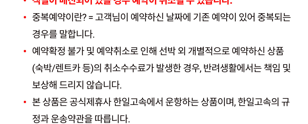 -본 상품은 공식제휴사 한일고속에서 운항하는 상품이며, 운항/이용 관련해서는 한일고속의 규정과 운송약관을 따릅니다.