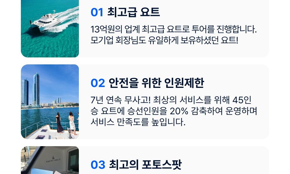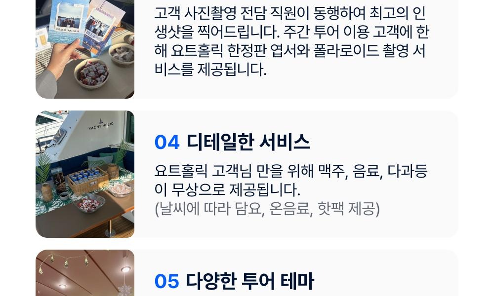 -선장의 안전 지시를 따라 주시고 위험한 행동은 삼가주세요.