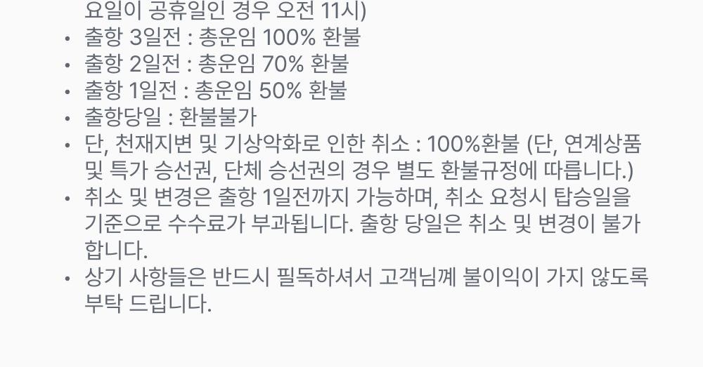 -당사의 문제로 인한 취소 시 운항 요금 전액 환불됩니다.