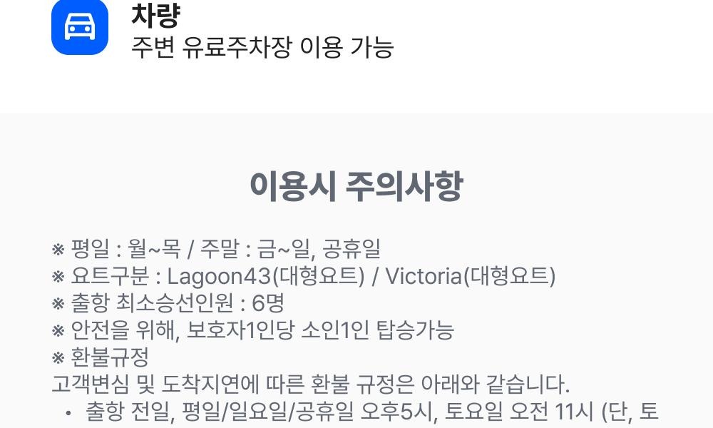 -임산부 및 노약자, 취객은 승선이 불가능 합니다.(위 사항을 어기고 탑승하여 문제 발생 시 당사는 책임이 없음을 알려드립니다. )