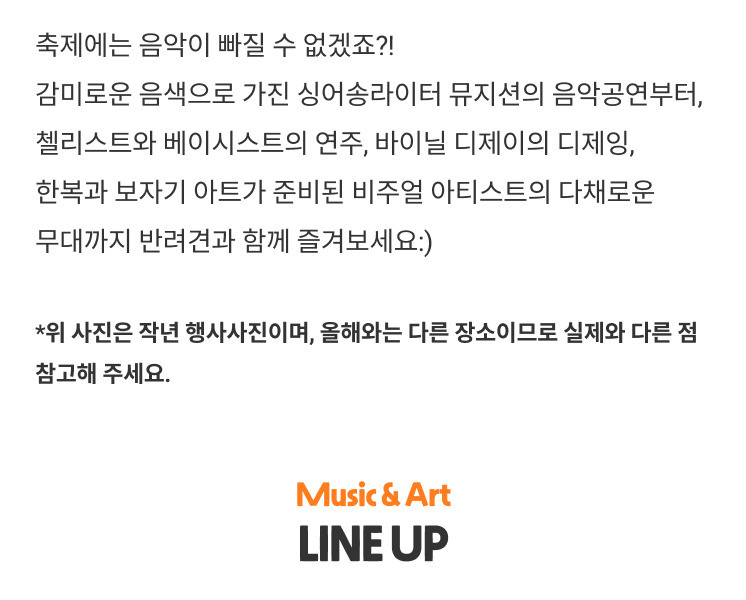 - 비반려인도 함께 즐기는 행사이며, 페스티벌 진행 동안 리드줄 이용 부탁 드립니다.