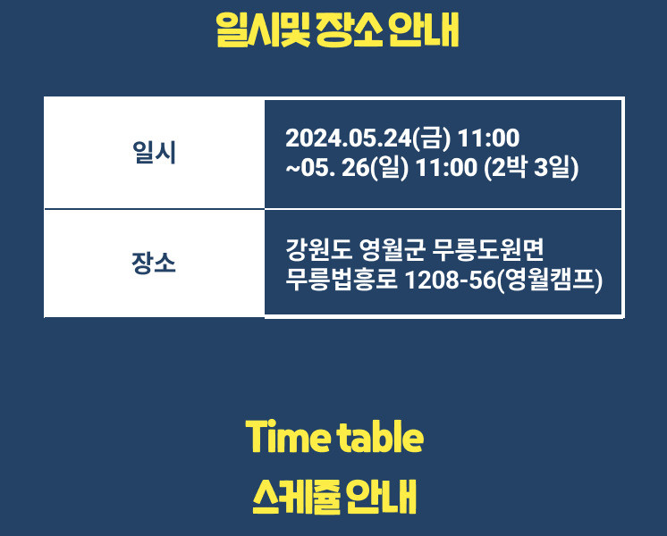 - 입실은 5월 24일 오전 11시부터, 퇴실은 26일 오전 11시까지 입니다.